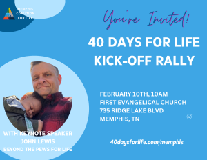 The Spring 40 Days for Life Kick-Off is JUST around the corner! You’re invited to help us kick off the campaign with a very special event. Our keynote speaker isJohn Lewis with Beyond the Pews for Life. John is an avid Sidewalk Counselor who has gone all over the country offering life and hope to women seeking abortions. Hear stories of lives saved, hear the reality of what’s going on in Illinois, and get all the information you need to start joining the International movement of prayer.
